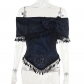 Product Name 2024 new European and American style sexy one shoulder tassel top for women