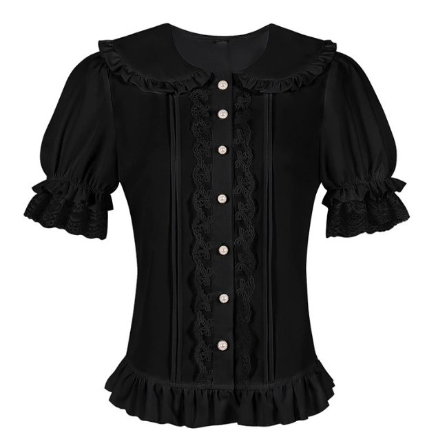 2025 European and American summer doll collar short-sleeved summer Lolita shirt soft girl puff sleeve slim short sleeve