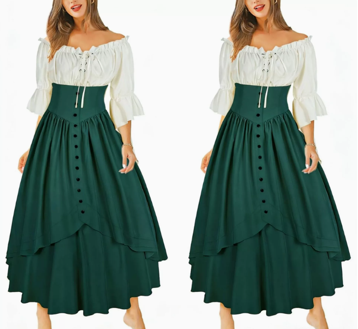 Product Name 2026 Halloween-themed Renaissance-style patchwork dress with pointed, asymmetrical design, fairy-like style.