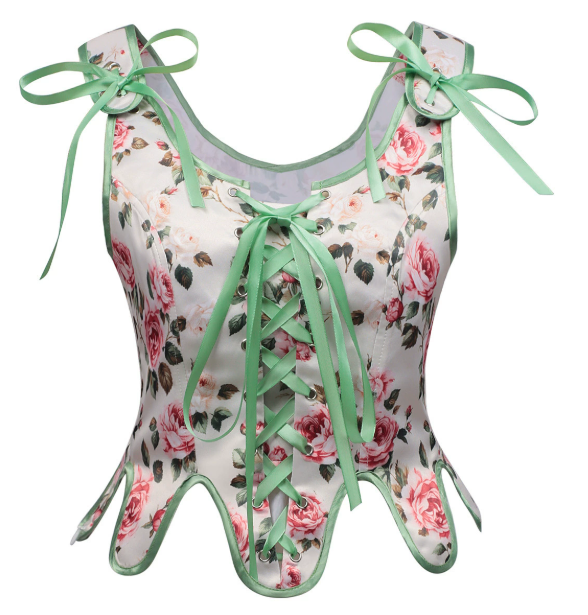 2026 New Women's European and American Court Style Zipper Bra for Outerwear, French Print Layered Vest for Performance Costume #Q-107