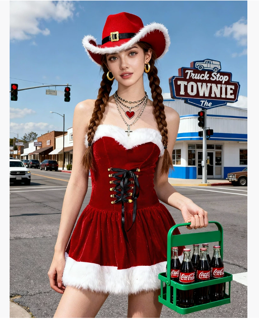 | Product Name | A sexy red fluffy Christmas dress, a red denim hat, and a Santa Claus costume. |