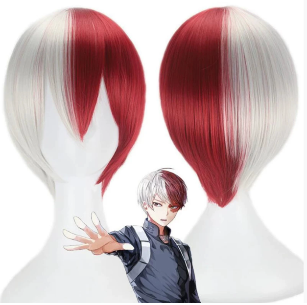 Anime wig My Hero Academia Todoroki Shoto red and white two-color short hair style cos wig red and white gradient