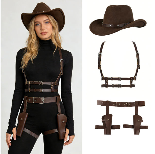 Product Name Dark Catwoman Style Sexy Outfit with Cross-Shoulder Strap, Mask, and Gun Holster - Party Cosplay Costume