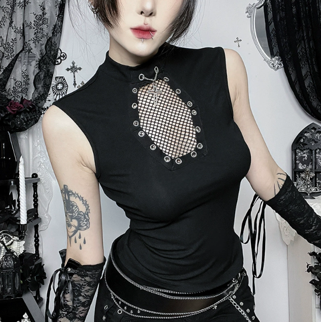 Dark-themed coffin-patterned fishnet top, 2026 new gothic style slim-fit sexy hot girl versatile vest.