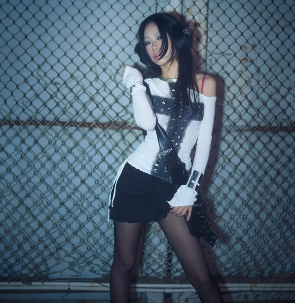 Dark-themed off-shoulder cross top, 2026 new sexy American gothic Harajuku style off-shoulder T-shirt