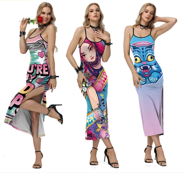 Demon Hunter Girl Group Cosplay Cross-border New Women's Clothing Suspender Slit Sexy Dress Digital Print Skirt Women's