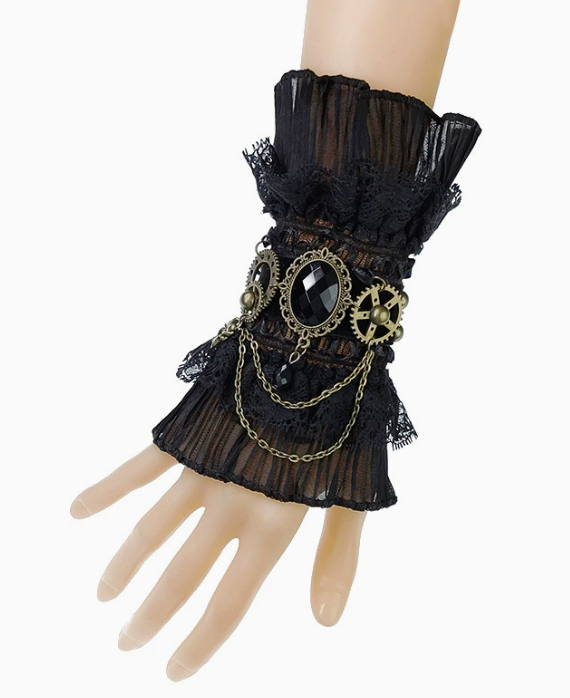 European and American anime style retro black gemstone ruffled lace bracelet Lolita style bracelet