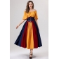 European and American medieval retro palace contrast color stitching flying sleeves tie waist large swing skirt masquerade performance costume #Z-822