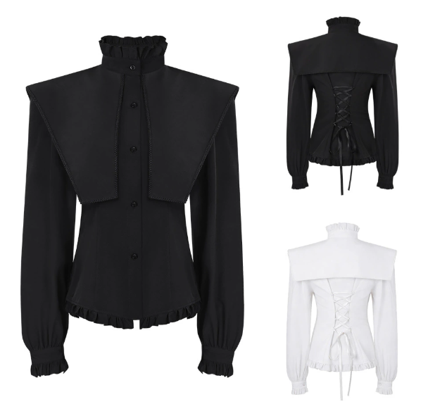European and American punk pleated gothic shirt medieval clothing steampunk Victorian top retro