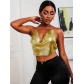none European station women's low -cut back -back metal sequin sequins chain strap deep V exposed navel vest 5.83 USD In Stock