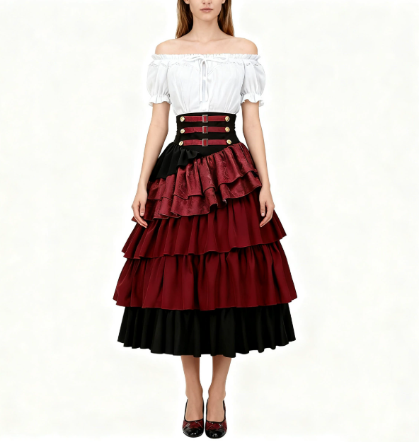 Female Steampunk Gothic Skirt Pirate High-Waisted Layered Ruffle Skirt Halloween Costume Female Somali Pirate