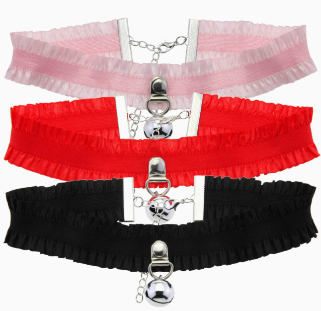Product Name Fresh and elegant ruffled lace bell pendant choker necklace, new style, elastic and comfortable collarbone necklace.