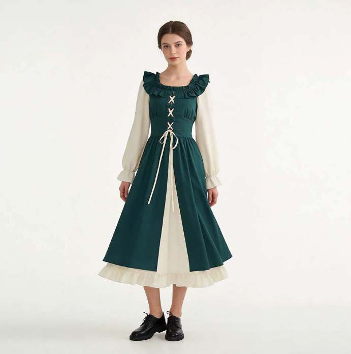 German traditional beer festival attire, Renaissance retro long-sleeved fitted waist dress, carnival dress.