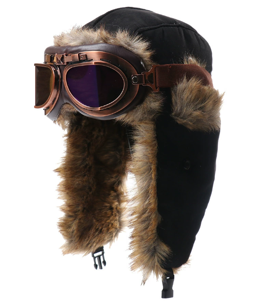 Harley-style suede goggles, Lei Feng hat, outdoor sports adult hat, retro classic windproof and warm hat.