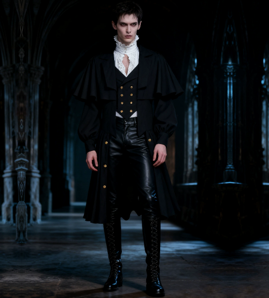 Medieval steampunk retro gothic trench coat gentleman's retro Victorian mid-length coat
