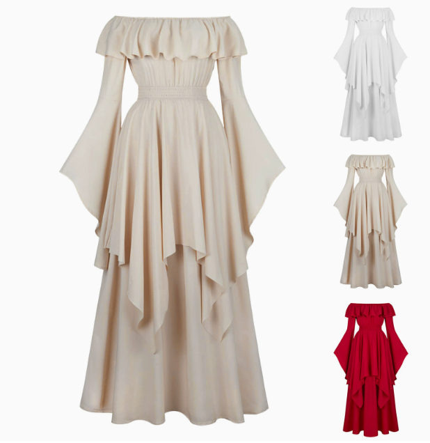 Product Name New Women's Dresses: Vintage Medieval Elastic Waist Dress, Renaissance Long Dress