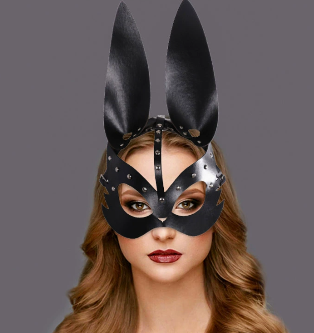 Punk Leather Bunny Mask for Proms, Halloween Carnivals, Animal Costumes and Props
