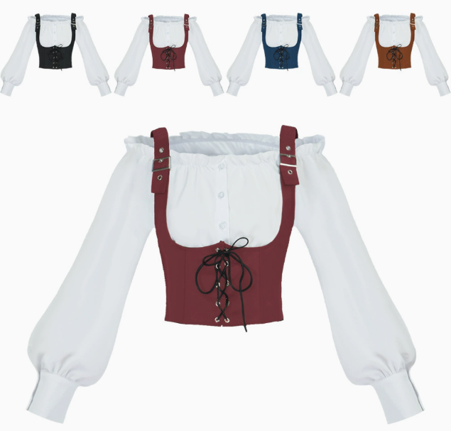 Product Name Renaissance Viking Vest, Suede Waistcoat, Ruffled Trim, Off-Shoulder Long Sleeve, Halloween