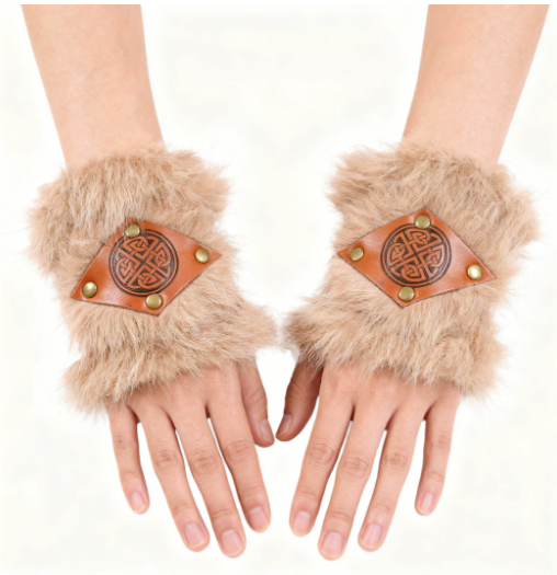 Product Name Retro medieval plush leather patchwork wristbands for men and women, punk arm guards, cosplay stage costumes