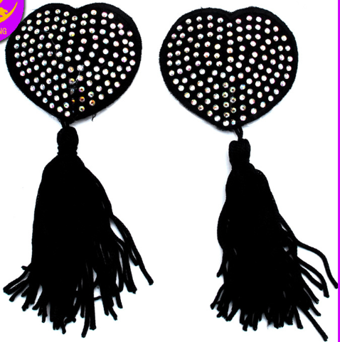 Tassel Round Silicone Nipple Stickers, Sexy Women's Breast Stickers, Elegant and Sexy Sequined Nipples #Q-40