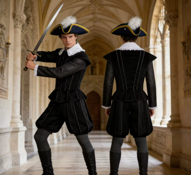 Product Name Tudor Elizabethan era role-playing costume, medieval Renaissance black outfit (including hat)